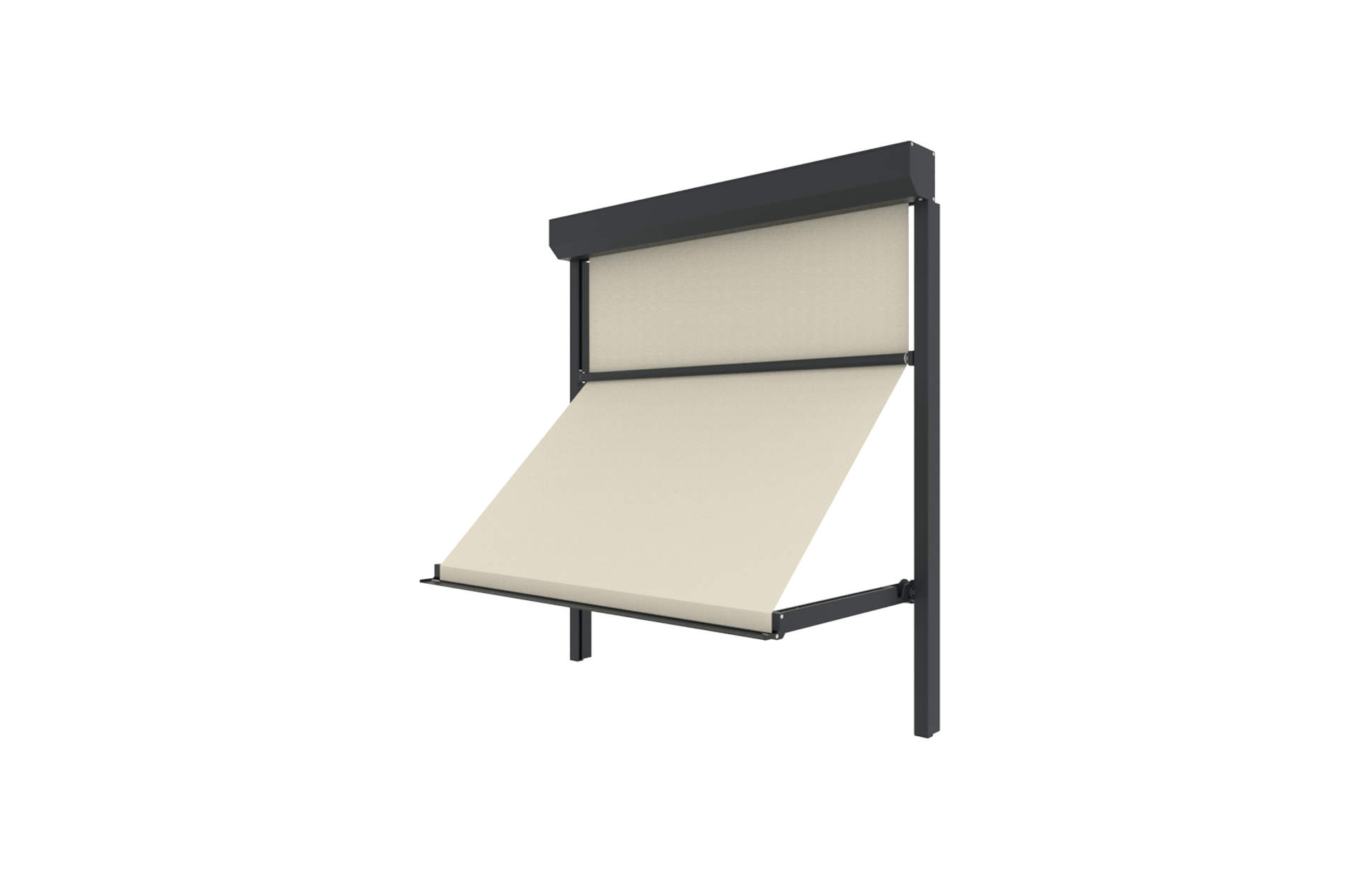 De Markisolette Excellent combineert het beste van beide werelden: de voordelen van screendoek met het vrije zicht van een uitvalscherm. Dit systeem zakt eerst verticaal omlaag en gaat daarna schuin uit, waardoor hinderlijk zonlicht effectief wordt beperkt zonder het uitzicht te belemmeren. Ideaal voor hoge ramen, zowel in woningen als in commerciële projecten zoals kantoren en ziekenhuizen.