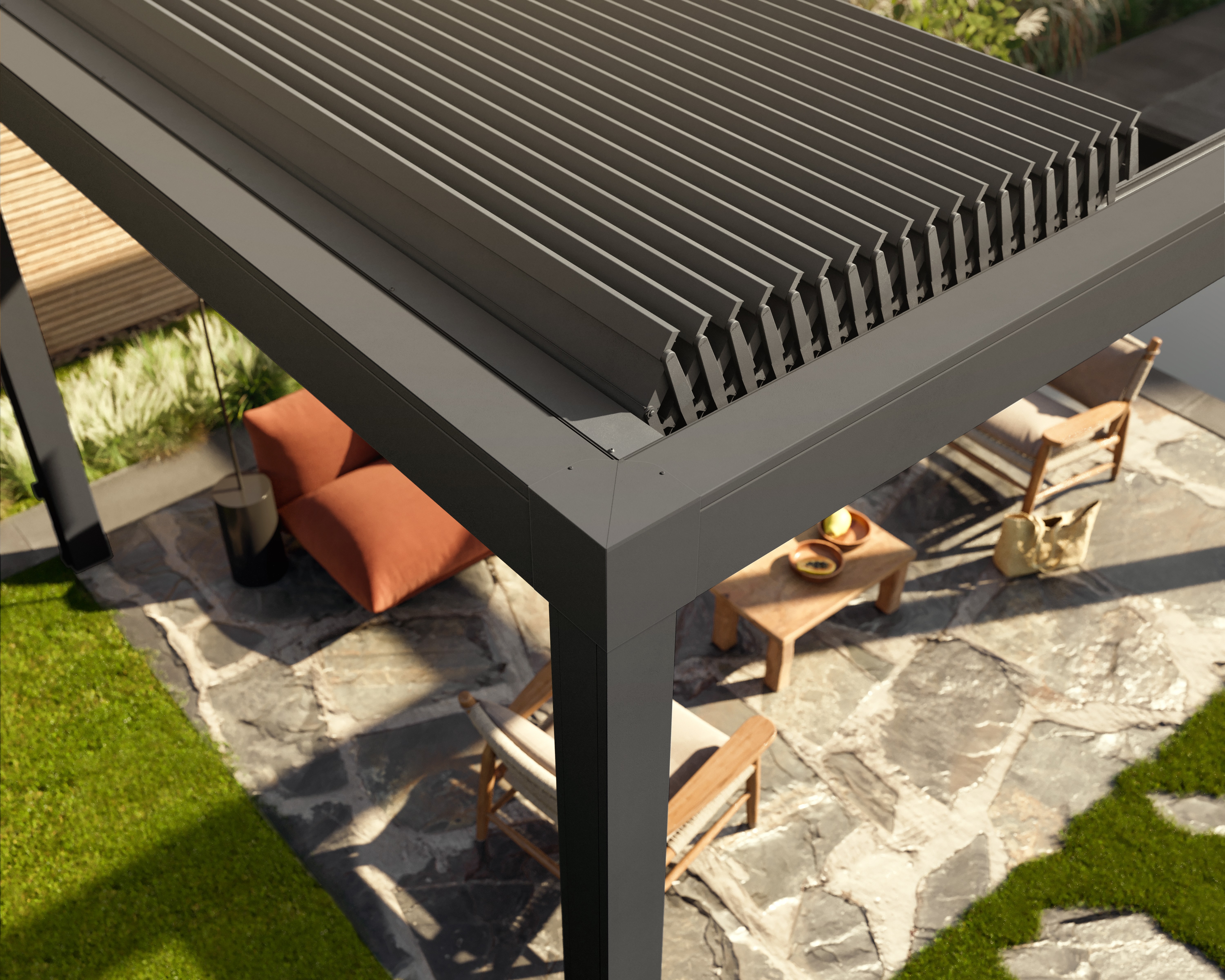 De lamellen kunnen naar één zijde worden geschoven voor een open dak