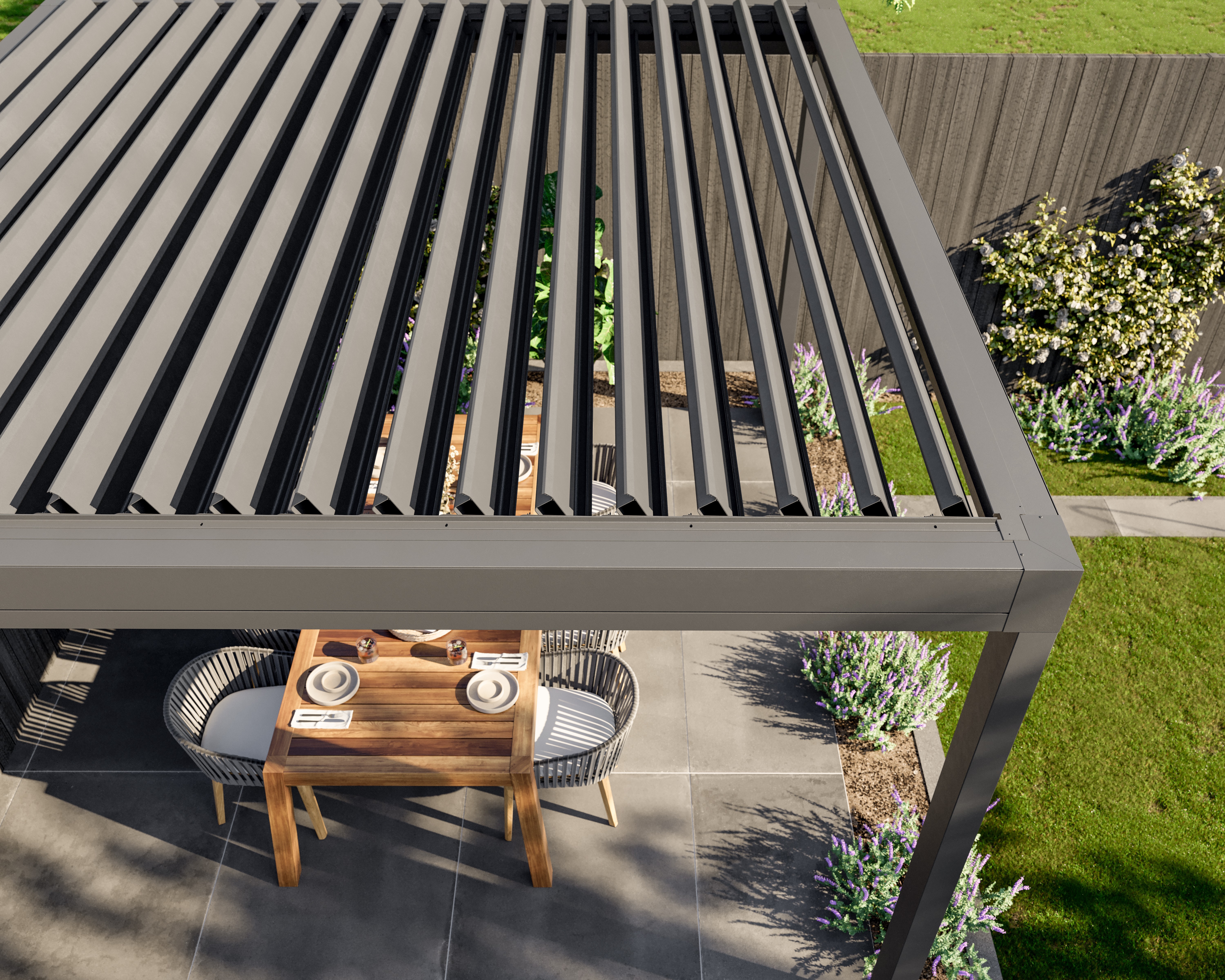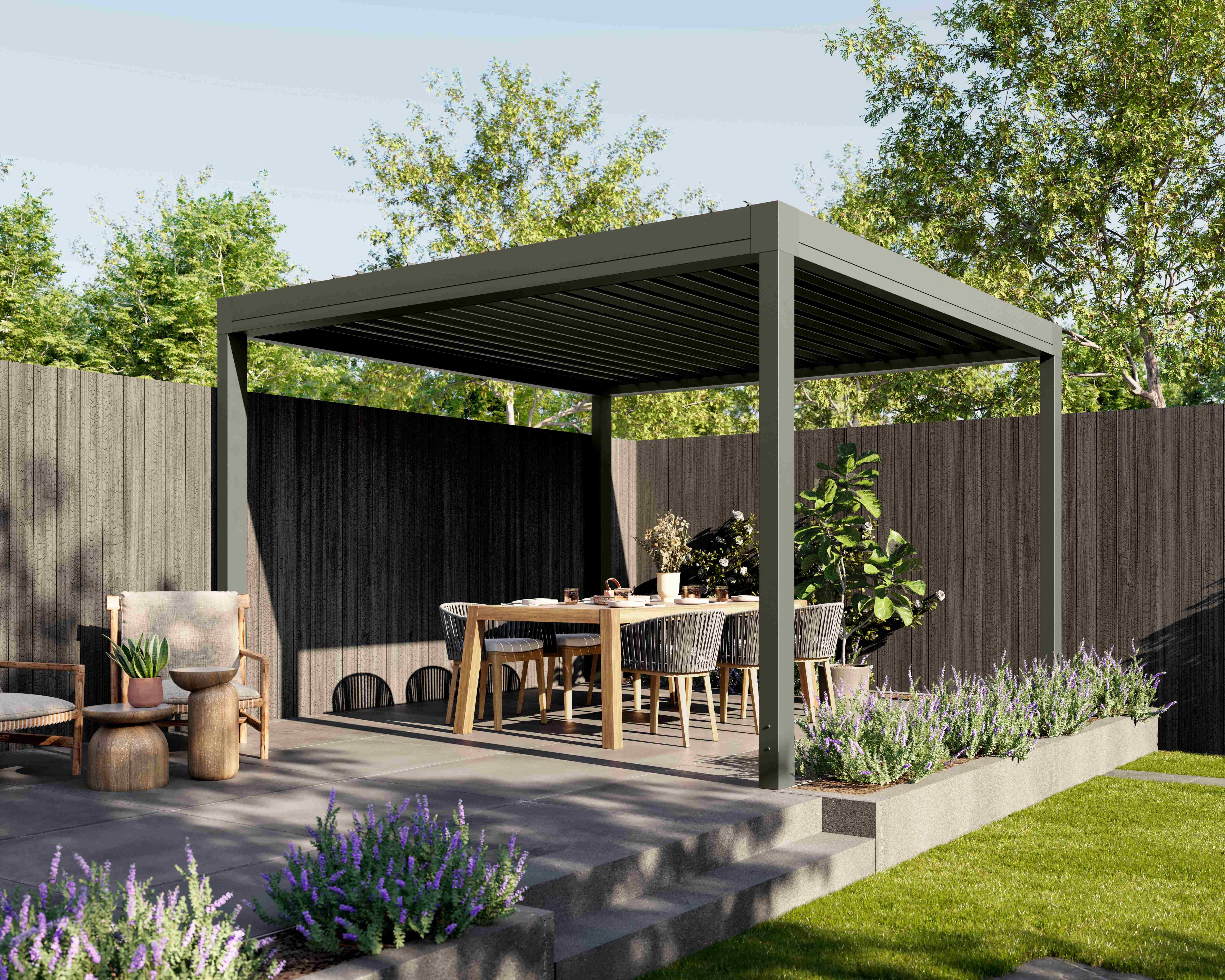 De Inclina is de ultieme oplossing voor het creƫren van een stijlvolle en beschermde buitenruimte. Met zijn tijdloze design en minimalistische lijnen biedt dit lamellendak een moderne interpretatie van de klassieke pergola. Door de kantelbare lamellen is er een prachtige balans tussen zonlicht en schaduw, waarmee de Inclina zich moeiteloos aanpast aan elk weertype.